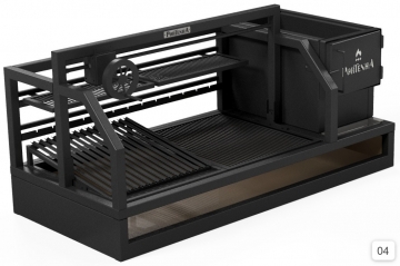 Caixa de brasas revestida em refratários – cria base sólida para as brasas e protege contra o vento.